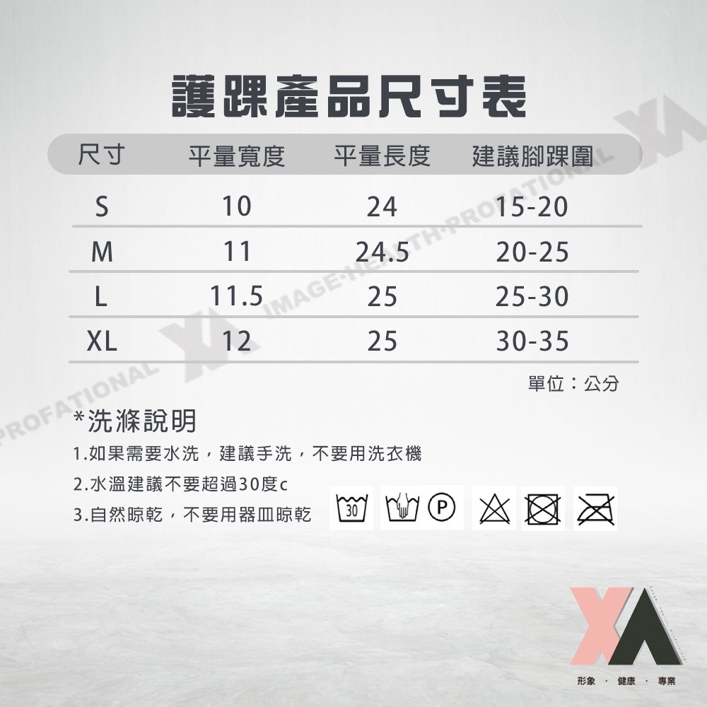 尺寸 平量寬度 平量長度 建議踝圍